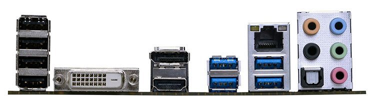 La connectique I/O est quant à elle bien fournie. Nous retrouvons donc quatre ports USB 2.0 ainsi que quatre autres à la norme 3.0. Niveau sorties vidéo, nous avons une prise DVI, HDMI et DisplayPort. La partie réseau sera prise en charge par une puce Intel tandis que l’audio, disposant d’une connectique optique, sera gérée par une puce ALC1150.