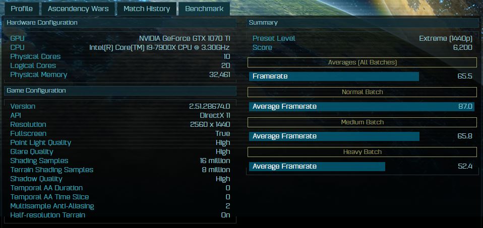 Pour le coup, pas d’information concernant les fréquences de la carte, seulement un score. La prochaine sortie de nVidia affiche quelque 6200 points en 1440p en preset Extreme. À titre de comparaison, une GTX 1080 tape dans les 7000 pts quand une GTX 1070 donne 5400 pts environ. On peut le voir, la 1070 Ti se situe bien entre les deux.