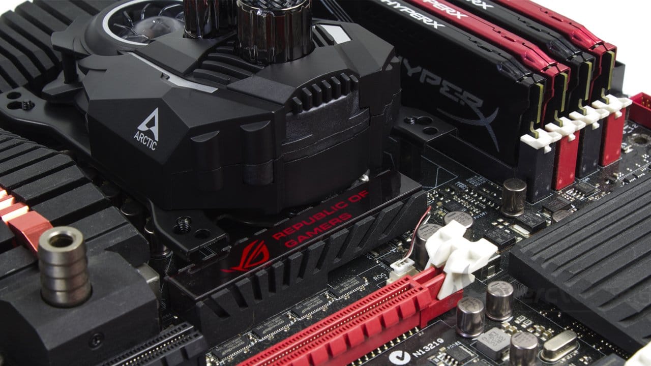 L’ultime étape consiste à fixer le radiateur dans le boîtier et à brancher l’unique câble à la carte mère. Bref, ça sera rapide bien qu’il faille faire attention à votre carte mère. Suivant si des radiateurs entourent le socket, le montage pourra s’avérer compliqué voire impossible. Notre Maximus V Formula peut en témoigner.